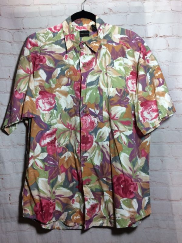 FALL FLORAL PAINTERLY PRINT COTTON SHIRT W/ COLLAR & FRONT POCKET