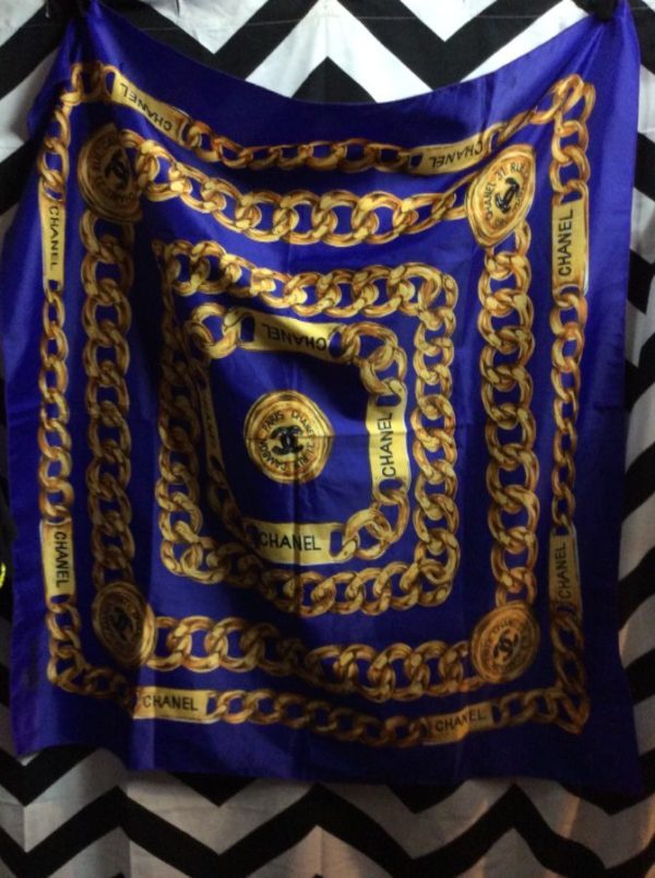 FAUX CHANEL W/ CHAIN PRINT LARGE SQUARE SCARF