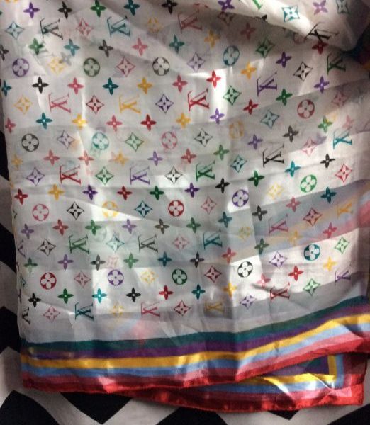 Scarf, faux Louis Vuitton, monogram, multi-colored design, white/multi
