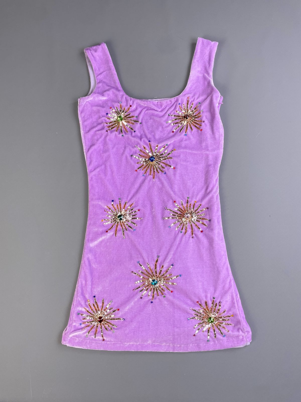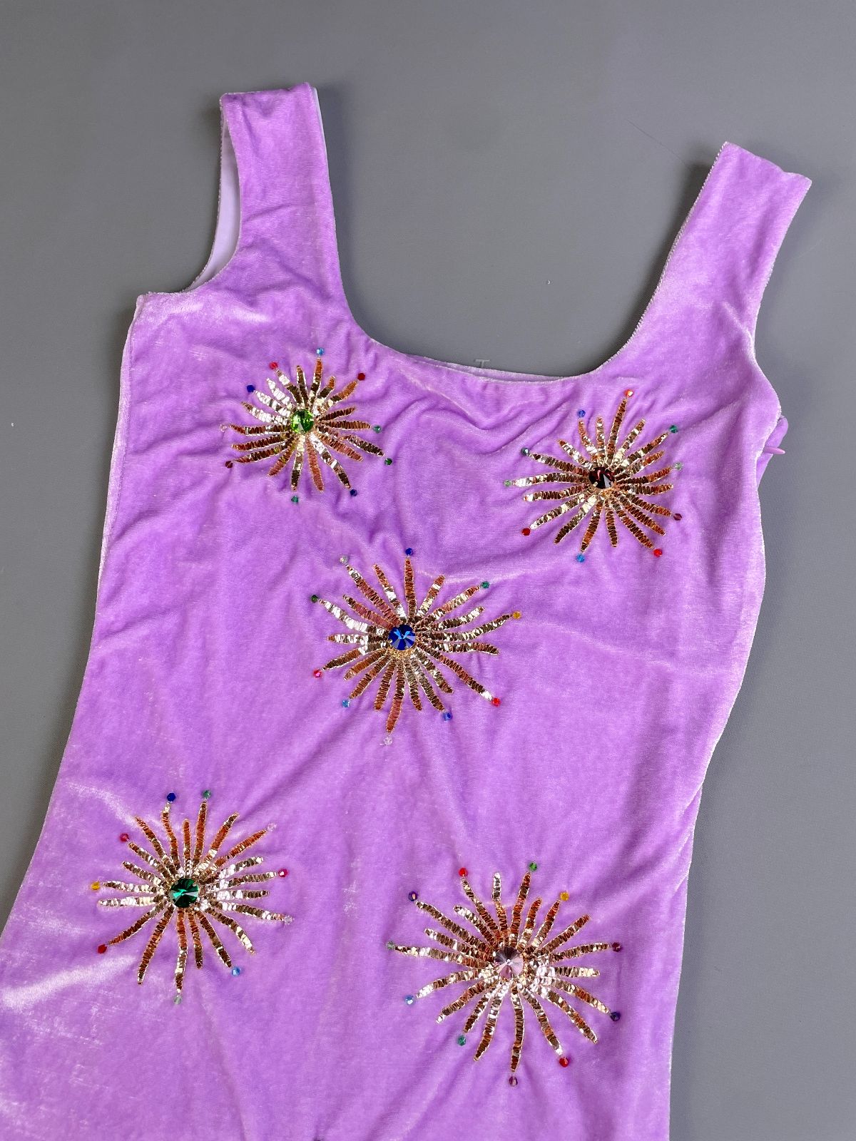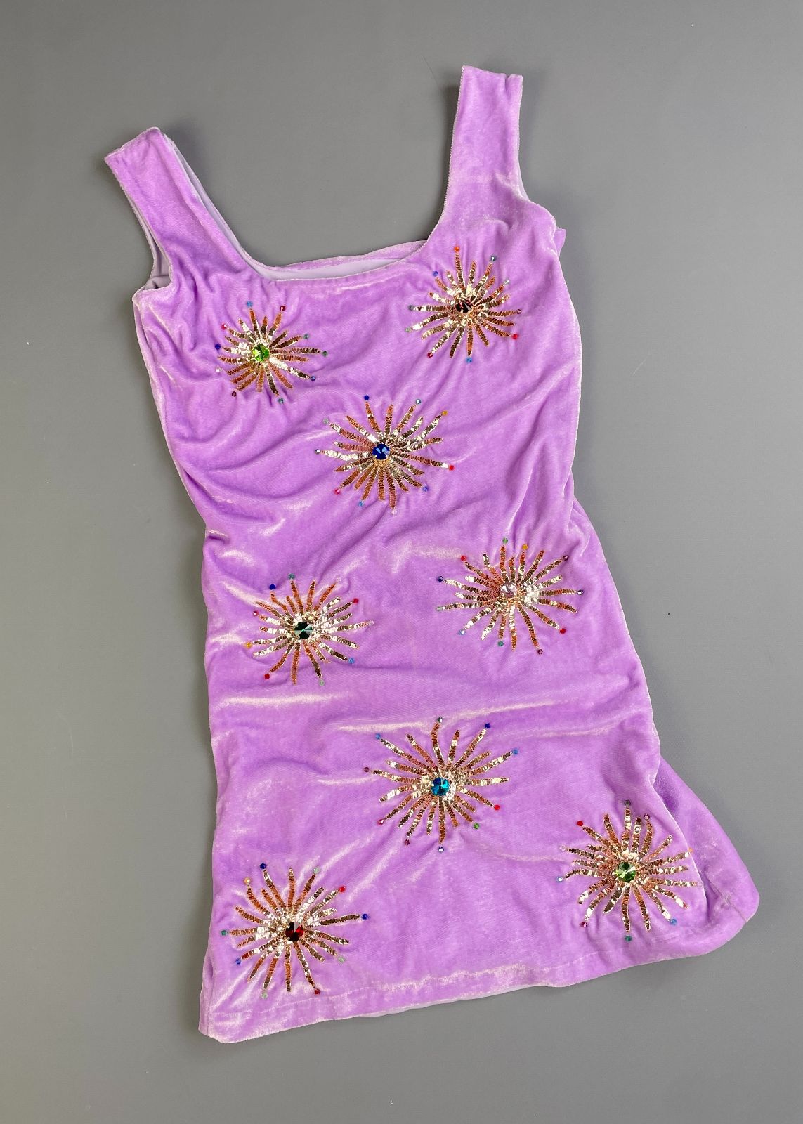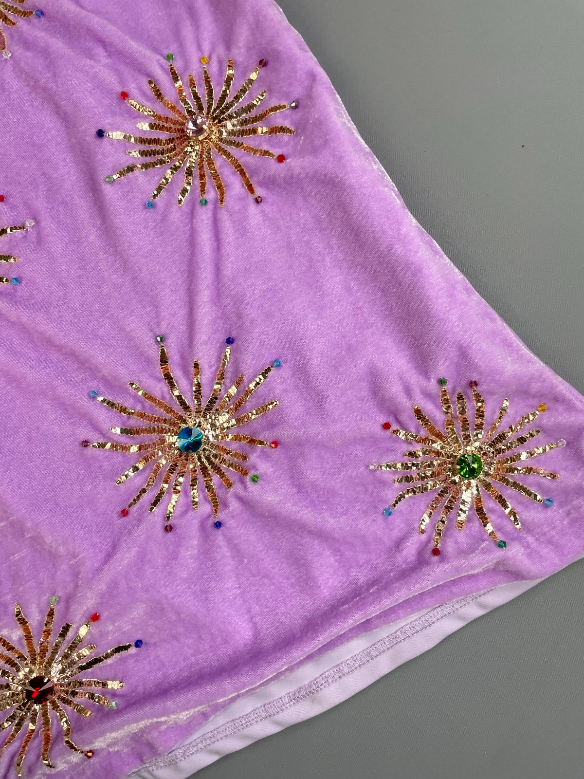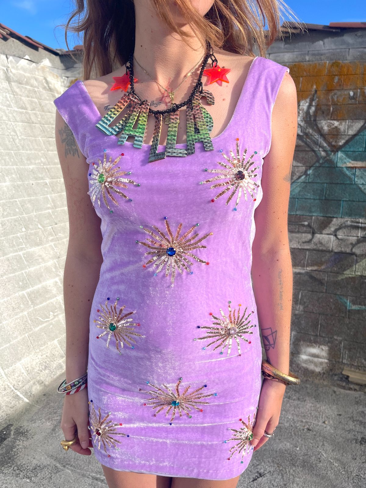 #FESTIVAL! LILAC CRUSHED VELVET STARBURST JEWEL EMBELLISHED MINI DRESS