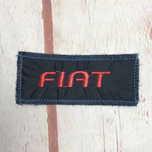 Vintage embroidered patch, rectangle shaped, Fiat, black/red