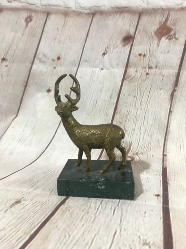 FIGURINE BRASS DEER ON MARBLE BASE