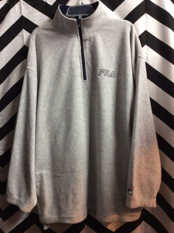 Fila pullover sweatshirt, fleece, zip-up neck, embroidered logos, gray, size XL
