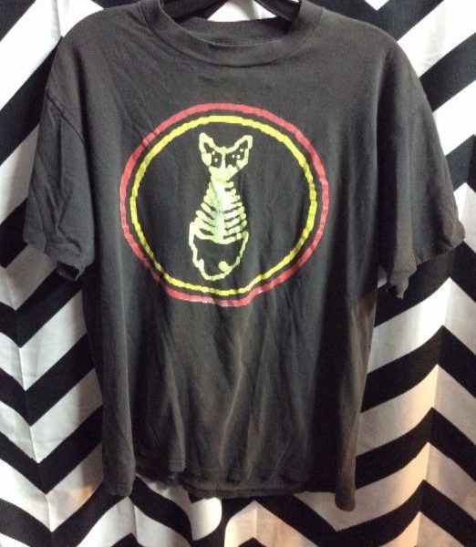 Fishbone Band T-shirt, screen printed fish graphic, black, size L