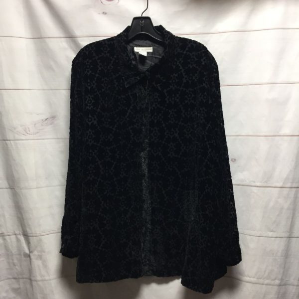 FLORAL BLACK ON BLACK FLOCKED VELVET BURNOUT LONG SLEEVE BUTTON UP BLOUSE