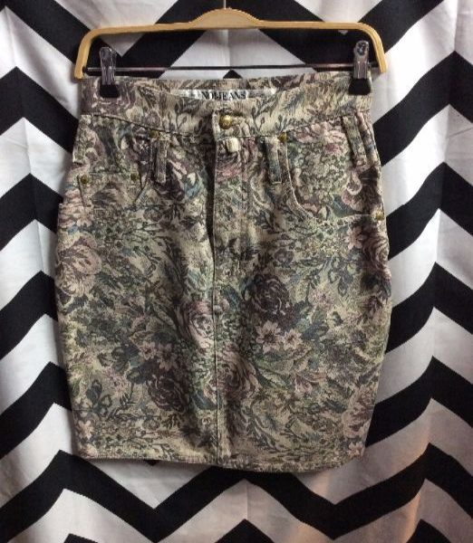 DENIM SKIRT – ZIP-UP – FLORAL PRINT DESIGN