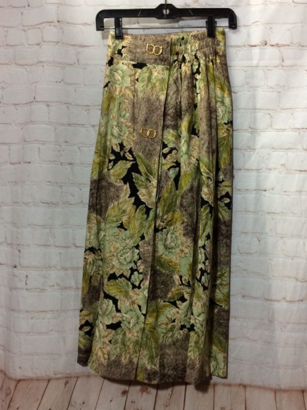 CROPPED WIDE LEG FLORAL PRINT PANTS W/ ELASTIC WAIST & SNAKE HARDWARE