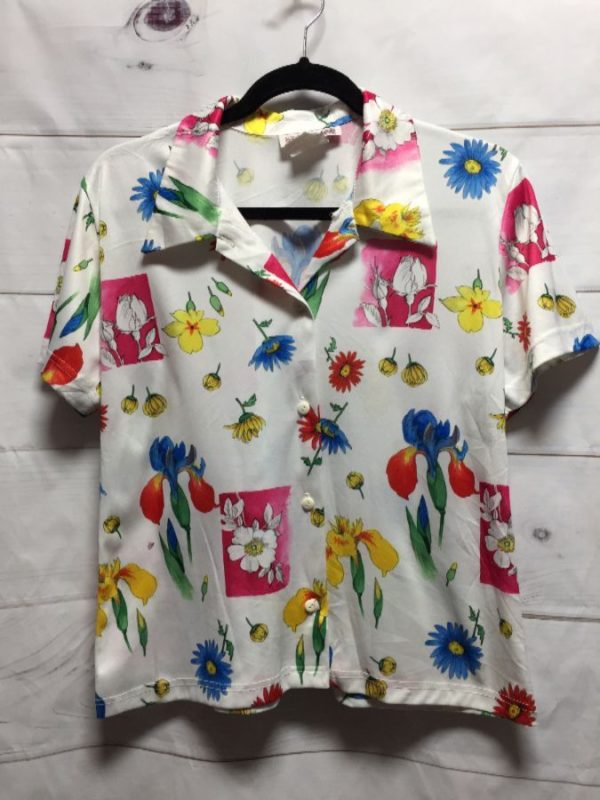 1970’S BRIGHT COLORED FLORAL PRINT BLOUSE