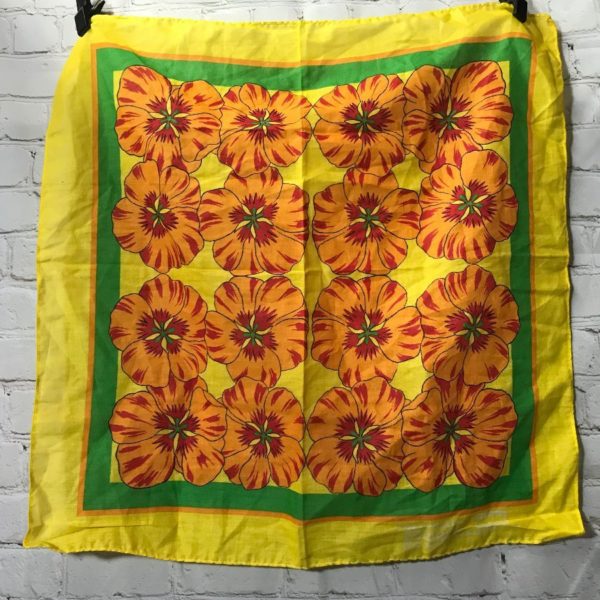 Bandana, square shape, Hawaiian hibiscus flower print, orange/yellow/green