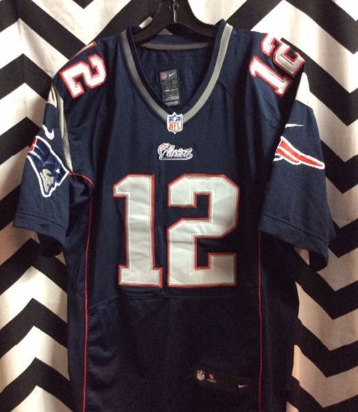 NFL football jersey, New England Patriots, Brady #12, navy/white/red, size 40