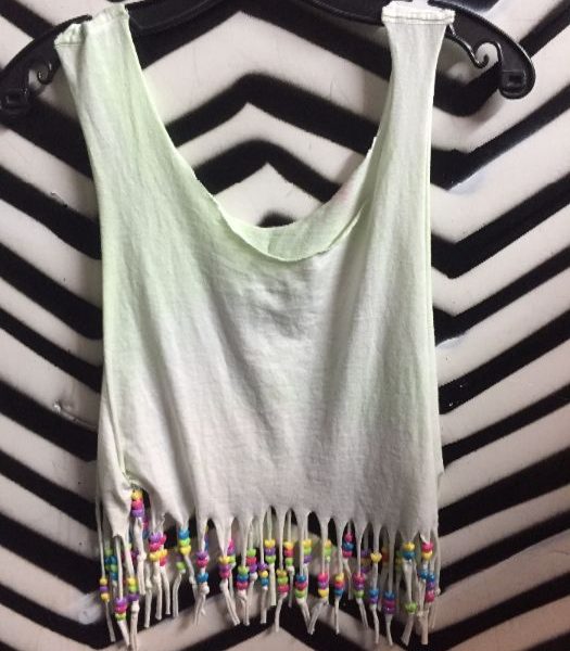 Tank top, tie-dyed, fringe and beads, light green, size M