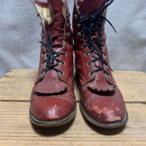 VINTAGE WOMENS LEATHER WESTERN STYLE HEELED COWBOY BOOTS BEADED CONCHO & TASSEL DETAIL