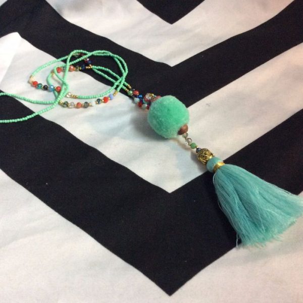 NECKLACE – FULLY BEADED W/POMPOM & TASSEL