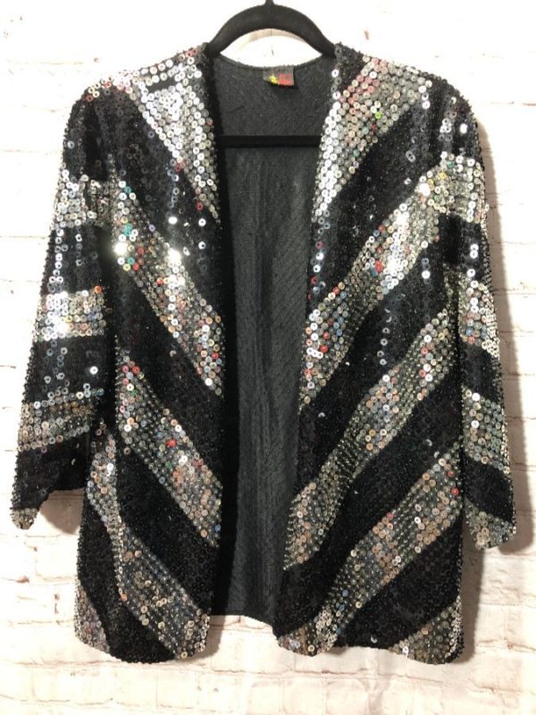 FULLY SEQUIN OPEN FRONT STRIPED JACKET