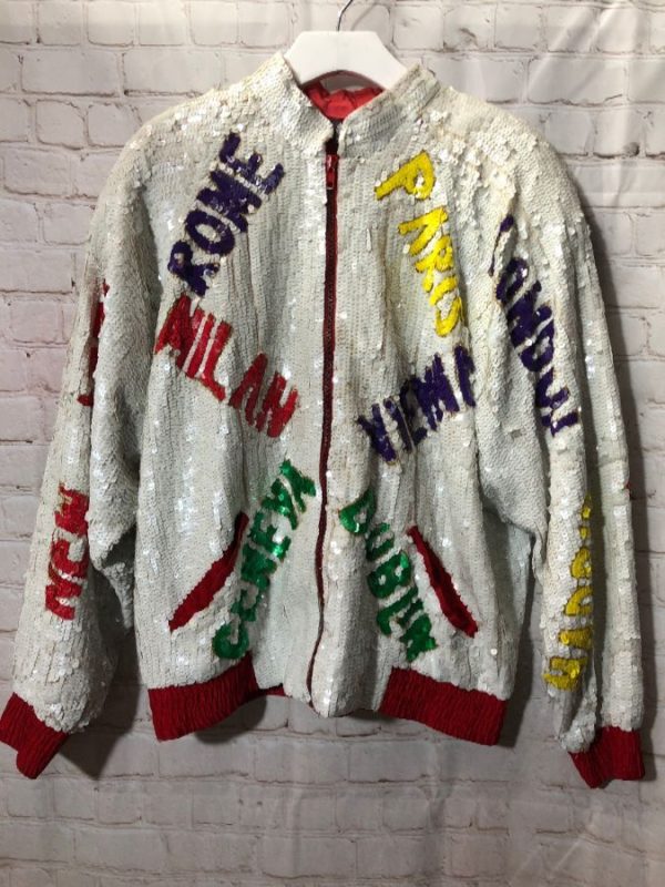 COVERED IN SEQUINS ZIP-UP JACKET W/ NAMES OF CITIES