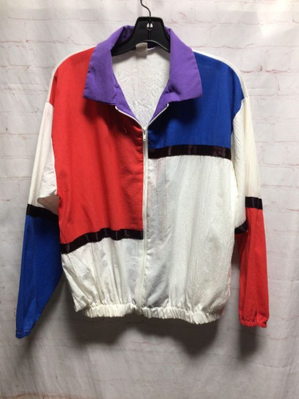 FUNKY COTTON COLOR-BLOCK DESIGN ZIP-UP JACKET