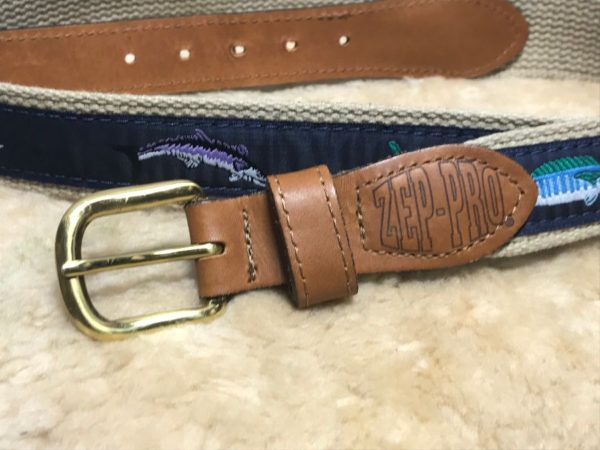 FUNKY FISH PRINT CANVAS BELT WITH LEATHER TRIMS BRASS BUCKLE