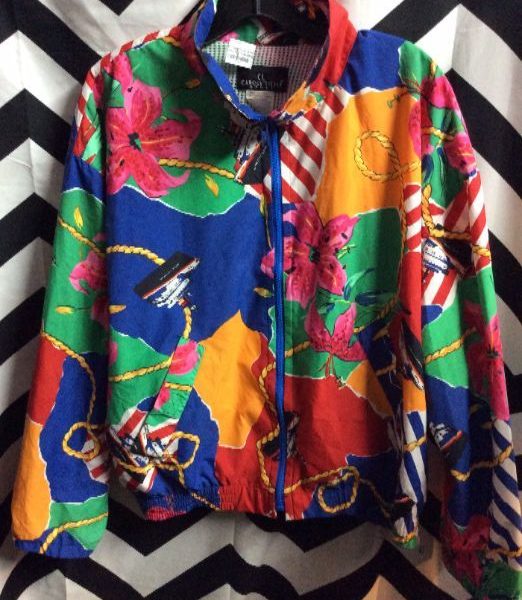 WINDBREAKER JACKET – COTTON – NAUTICAL & FLORAL PRINT – FUNKY