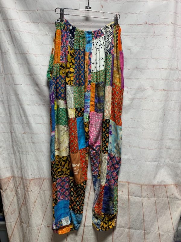 FUNKY PATCHWORK HAREM RAYON PANTS W/ POCKETS & ELASTIC WAIST