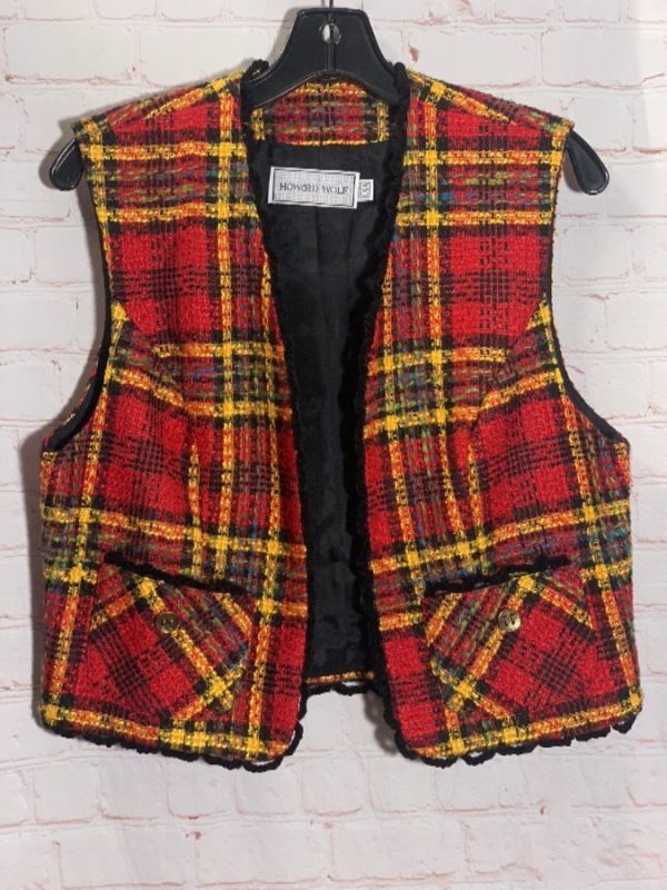 TARTAN PLAID WOOL BLEND BOUCLE KNIT VEST MADE IN USA