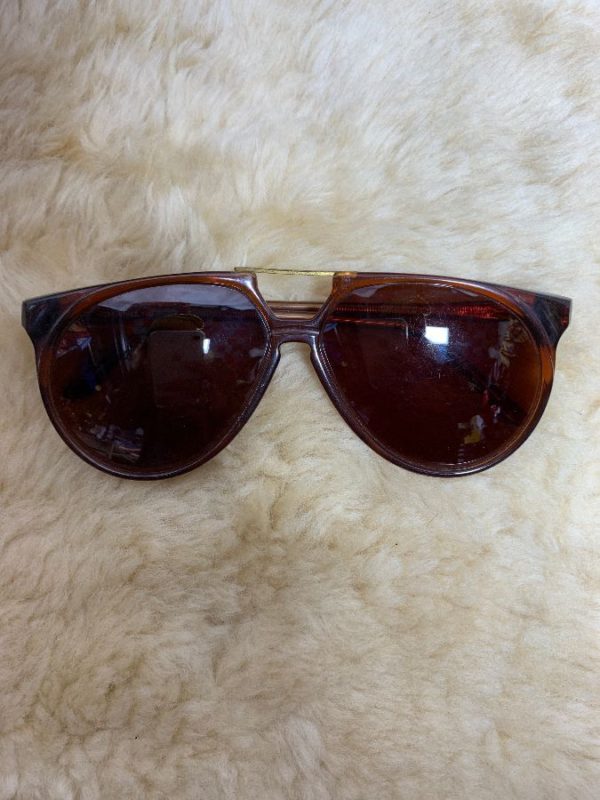 Michael Jackson sunglasses, aviator style, funky plastic tortoise shell frames, brass top bar, warm colored lenses, brown As is