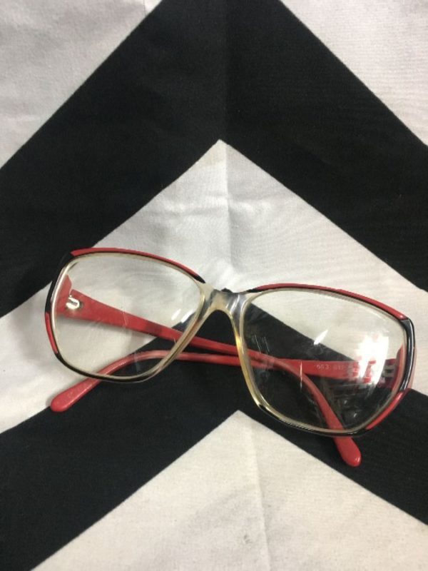 Retro prescription glasses, funky, multi-color frames, red/black/clear