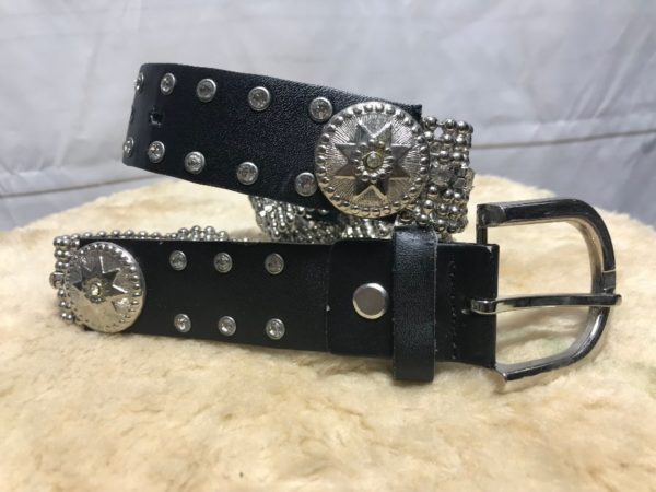 GLITZY 1990S METAL BALLCHAIN & LEATHER BEDAZZLED RHINESTONE BELT SILVER HARDWARE