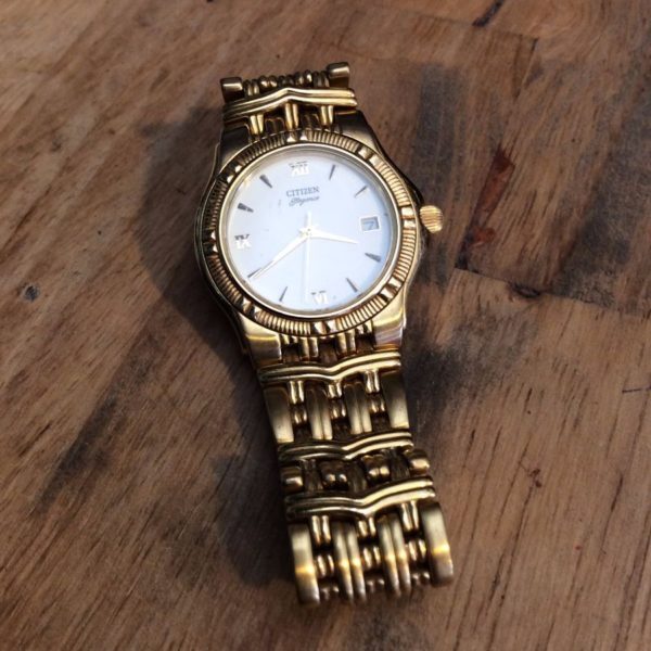 Retro Citizen watch, chunky, metal, gold, size adjustabe