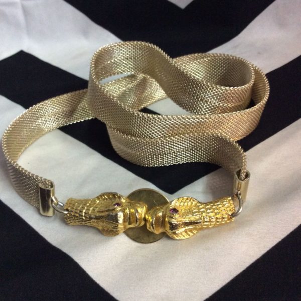 Belt, mesh, double touching cobra heads buckle, gold