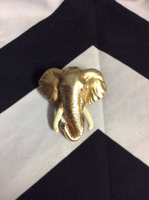 Brooch, elephant head, with ivory looking tusks, gold/creme
