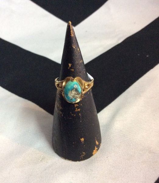 Ring, gold fill, turquoise nugget, gold/turq, size 7