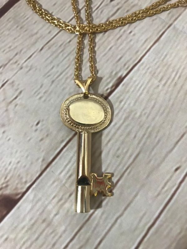 SHINY GOLD METAL KEY/WHISTLE NECKLACE 1990’S