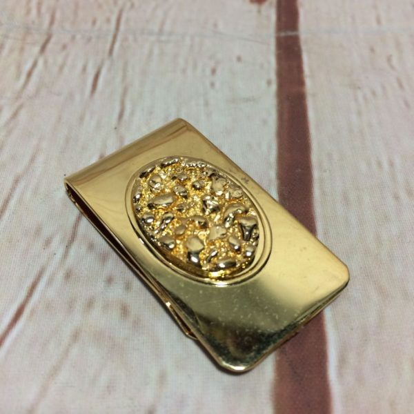 GOLD METAL NUGGET CLUSTER IN OVAL FRAME DESIGN MONEY CLIP