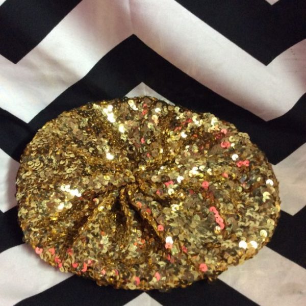 JACLYN SMITH BERET, SEQUIN EMBELLISHED, GOLD, SIZE L