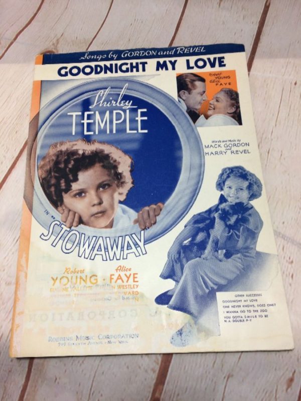 Sheet music, Shirley Temple, Goodnight My Love, Stowaway