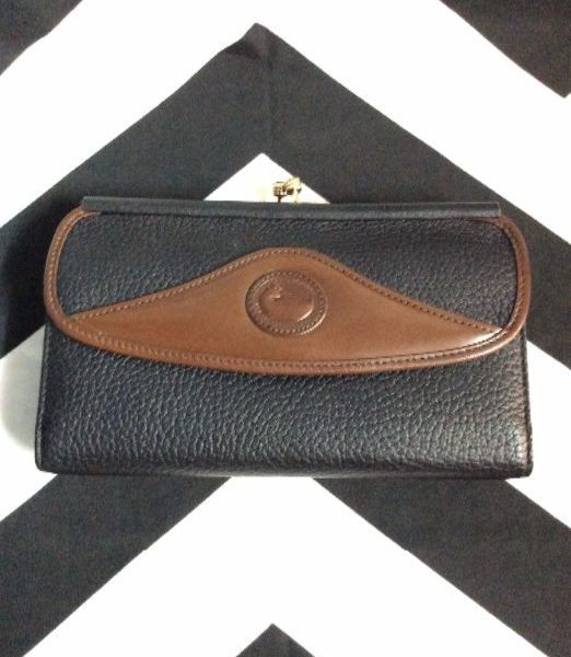 Dooney & Bourke wallet with pen, leather, supple, gorgeous, brown/navy mint condition