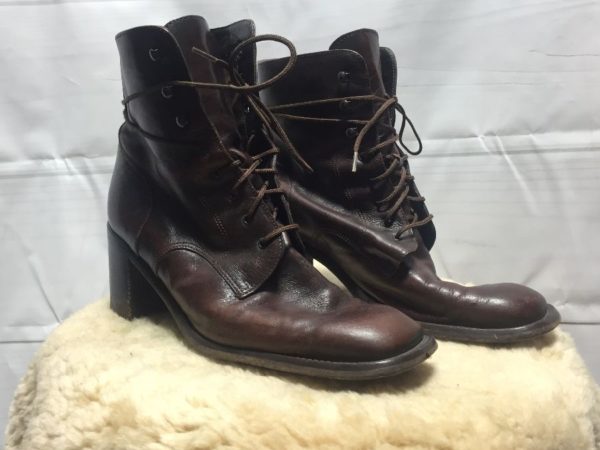 JOAN & DAVIS BOOTIES, LEATHER, LACE-UP, ANKLE HIGH, SQUARE TOE, CHUNKY HEEL, GORGEOUS, DARK BROWN, SIZE 37
