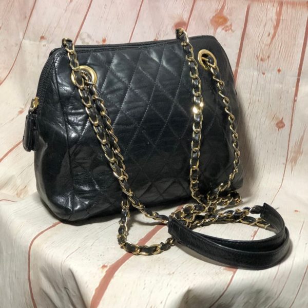 VINTAGE 1980’S NEIMAN MARCUS QUILTED LEATHER HANDBAG W/ DOUBLE CHAIN LINK STRAPS