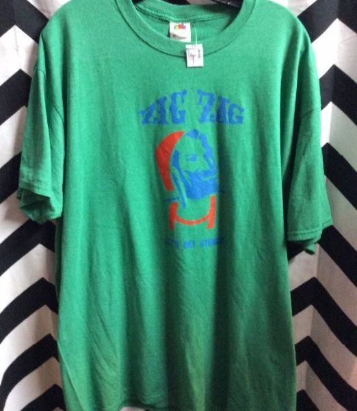 T-shirt, Zig Zag, Let’s Get Stoned, screen printed graphic, green/blue/red, size XL