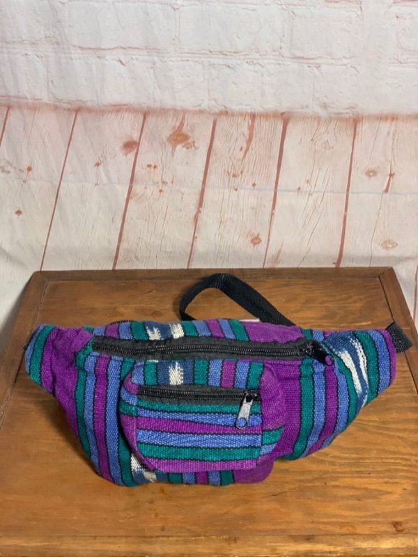 GUATEMALAN STYLE STRIPED DESIGN FANNY PACK W/ 3 ZIPPER COMPARTMENTS