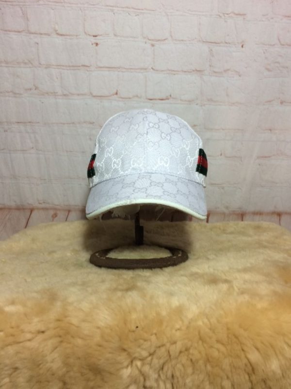 Gucci cap, baseball style, color on color monogram print, traditional colors side patches, adjustable leather back strap, white/green/red, size adjustable