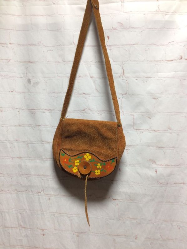 HANDBAG SUEDE & HAND PAINTED FLOWERS ON LEATHER FLAP CLOSURE