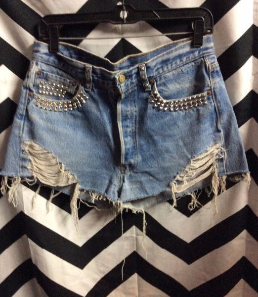 LEVIS DENIM SHORTS – CUTOFF – STUDS ON POCKETS – HANDMADE