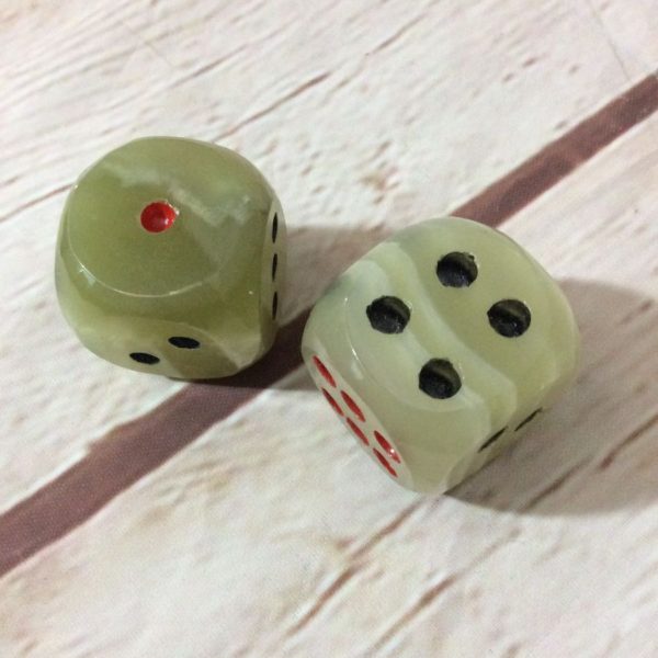 PAIR OF HANDMADE GREEN ONYX CARVED DICE- LARGE