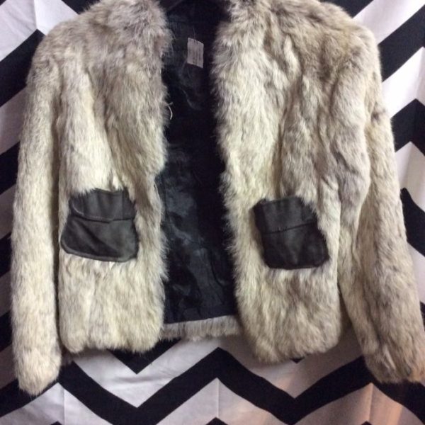 FUR JACKET – HANDMADE – RABBIT W/LEATHER POCKETS