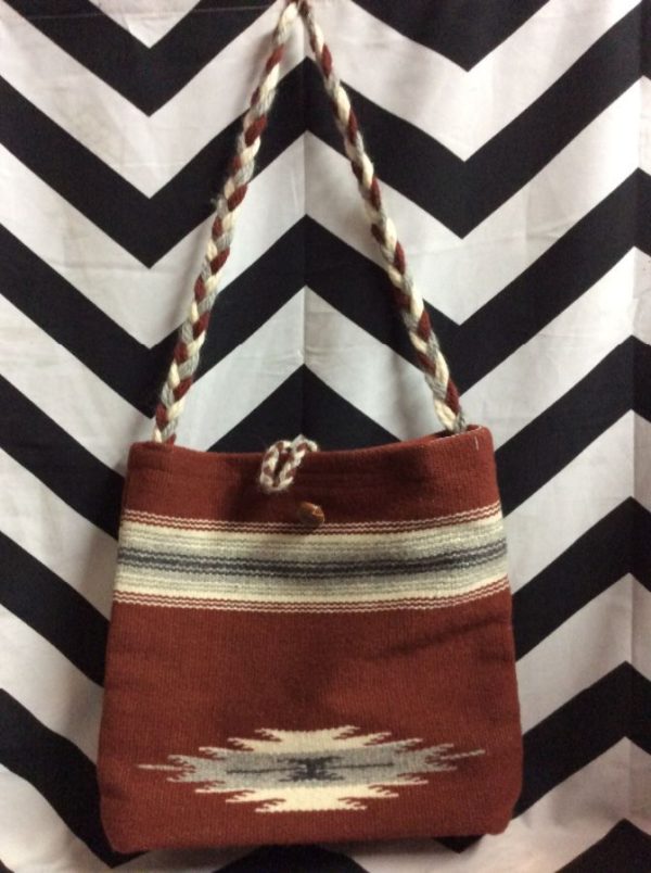 HANDWOVEN WOOL BAG W/ BRAIDED STRAP SILKY INNER LINING