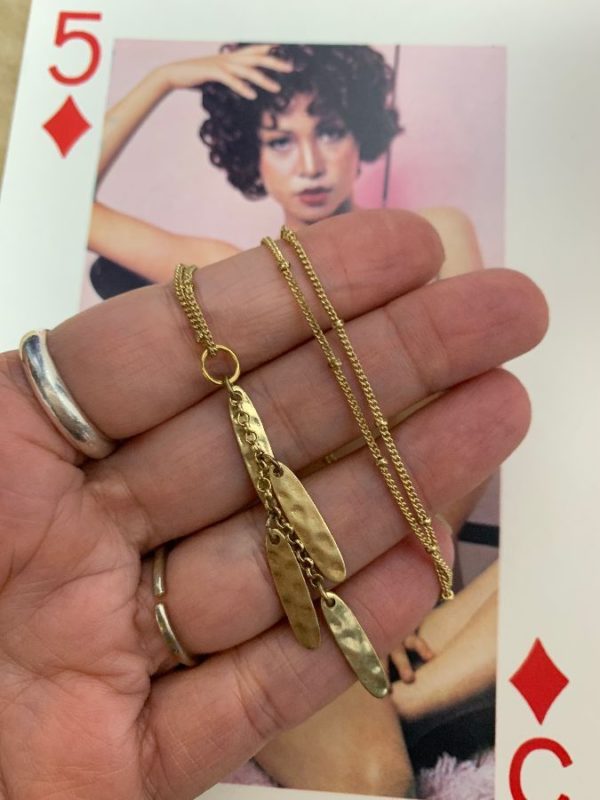 HANGING QUADRUPLE HAMMERED CHARMS ON THIN GOLD CHAIN