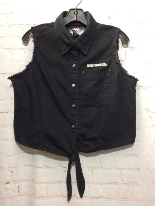 HARLEY-DAVIDSON CROP TIE-UP CUT-OUT SLEEVES TOP W/ LARGE EMBROIDERED BACK DESIGN