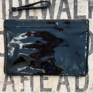 KILLER 1990S LARGE PATENT LEATHER ENVELOPE CLUTCH CHUNKY ZIPPERS WRISTLET