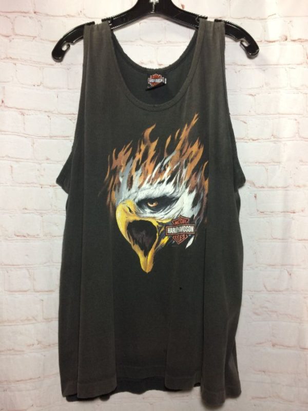 HARLEY DAVIDSON TANK TOP – SCREEN PRINTED GATEWAY TO THE WEST – ST LOUIS FULL BACK & SCREAMING EAGLE GRAPHIC FULL FRONT